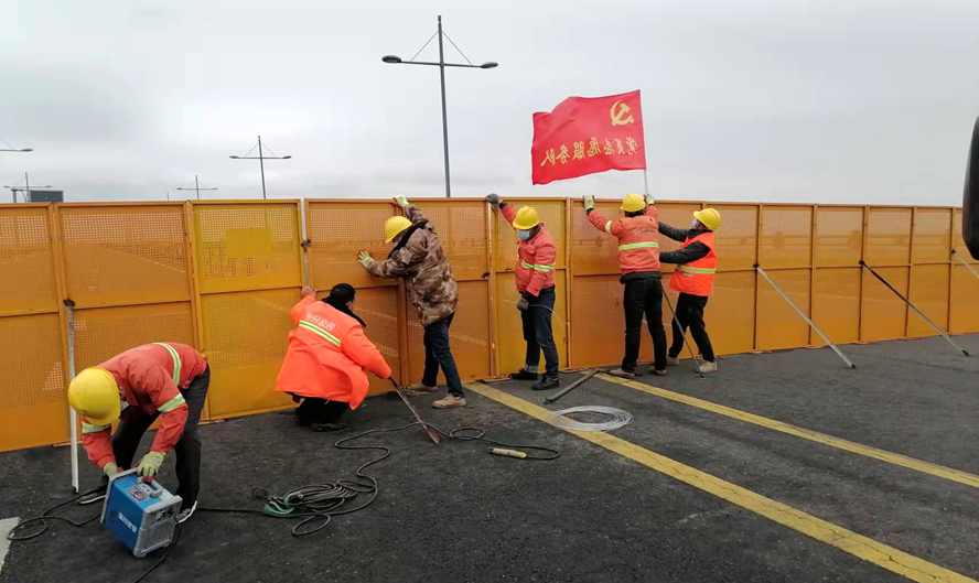 安裝加固步步到位。“今天市政在崗9人。”17號(hào)一大早,市政經(jīng)理高峰就準(zhǔn)時(shí)在公司防疫管理群里報(bào)告人數(shù)。可是此時(shí)這崗位卻設(shè)在狂風(fēng)凌洌、無遮無擋的海濱大道上。肆虐的狂風(fēng)吹倒了許多防護(hù)欄,從清晨開始,高峰就帶領(lǐng)市政突擊隊(duì)沿著合作路、海濱大道等八個(gè)路段一路巡查一路搶修。面對(duì)狼藉的現(xiàn)場(chǎng),高峰沉著冷靜,有條不紊地帶著大家用力地扶起扶正,再加樁固定。施工現(xiàn)場(chǎng),風(fēng)聲伴著加油的號(hào)聲、汗水伴著有節(jié)奏地敲擊聲,這場(chǎng)景,不正是一幅感人的“錚錚鐵骨鑄堅(jiān)壁”的動(dòng)人畫卷嗎?自3月5日疫情襲來,市政突擊隊(duì)就馬不停蹄地奮戰(zhàn)在新區(qū)的各個(gè)角落。施工期間,高峰他們白天黑夜地連軸轉(zhuǎn),中午來不及休息便蹲在路邊吃快餐,為了搶工期,有時(shí)竟加班到深夜12點(diǎn)。短短的10天,他們?cè)谧龊闷渌姓?wù)工作的同時(shí),已經(jīng)先后安裝完成了2000多米的道路圍擋,讓病疫“無路可逃”。