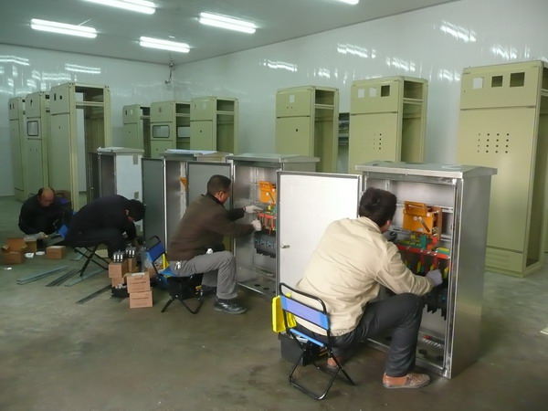 為快速、順利推進高低壓開關成套設備、三箱類產品、橋架及母線生產項目,公司高度重視相關管理、技術、市場經驗積累,購進數控機床,整合資源,創造條件,在抓好新廠籌建的同時,在原臺北供電所辦公場地進行低壓電氣設備開工試生產。領導班子成員全部親臨現場指導、觀摩。試生產現場,剪切、鉆孔、打磨、安裝、調試,有條不紊。一個個電纜分支箱、高低壓柜相繼“誕生”。低壓配電設備開工試生產,為加快項目建設步伐奠定了基礎。(司宣)