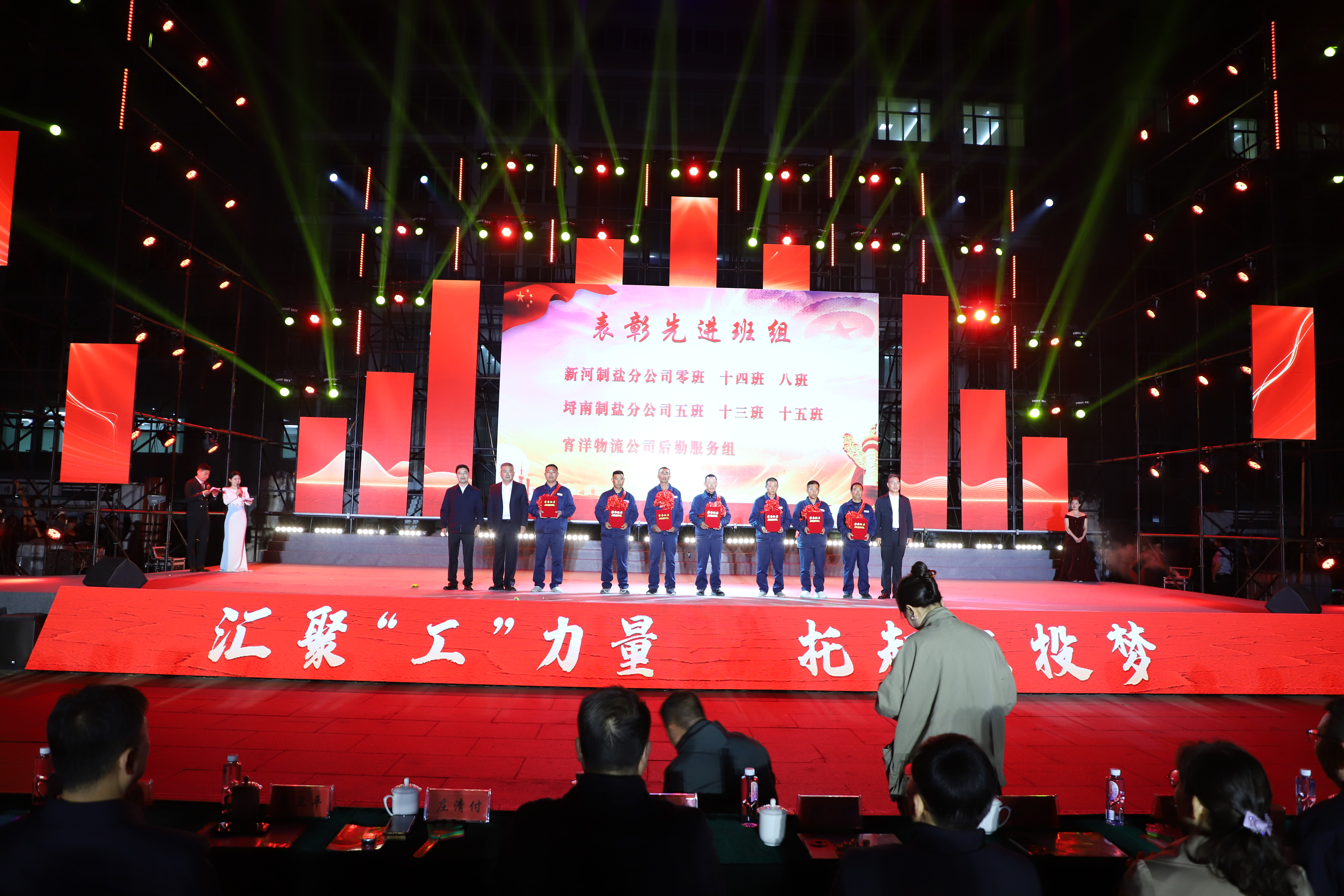 本次文藝匯演有歌舞、三句半、音樂快板、朗誦、相聲、歌曲串燒、歌曲獨唱、大合唱等豐富多彩的節目,其表演形式和精彩內容引人入勝,火熱絢麗的舞臺、貼近職工生活的節目內容、公司熱火朝天的奮斗場景,呈現了灌西人對企業的深沉情感和對工作生活的激情與熱愛。演出在開場群舞《盛世歡歌》拉開帷幕,整個演出分為“禮贊·勞動最光榮”“鑄魂·勞動最崇高”“閃耀·勞動最美麗”“輝煌·勞動最偉大”四個篇章,三句半《凝心聚力譜新篇》、舞蹈《沸騰的鹽灘》、音樂快板《后發先至看工投》等都是灌西職工自編自演的節目,充分展現了灌西員工朝氣蓬勃、奮發向上的精神面貌,以及對公司創新發展、職工幸福安康的美好祝愿。灌西公司黨委書記、董事長孫政權和金航公司黨總支書記、總經理莊清付分別登臺獻藝,為大家表演了歌曲獨唱《我是一條小河》和配樂詩朗誦《我驕傲,我是中國人》,得到職工觀眾們熱烈的掌聲。小合唱《咱們工人有力量》、大合唱《新時代新家園》《沒有共產黨就沒有新中國》等節目把現場的氣氛推向了高潮,有力展現了全公司職工們激情澎湃、昂揚奮進的精神面貌。在文藝演出中間,還分別對公司各條戰線的勞模先進代表、先進單位、部門和班組進行了表彰。(西宣)