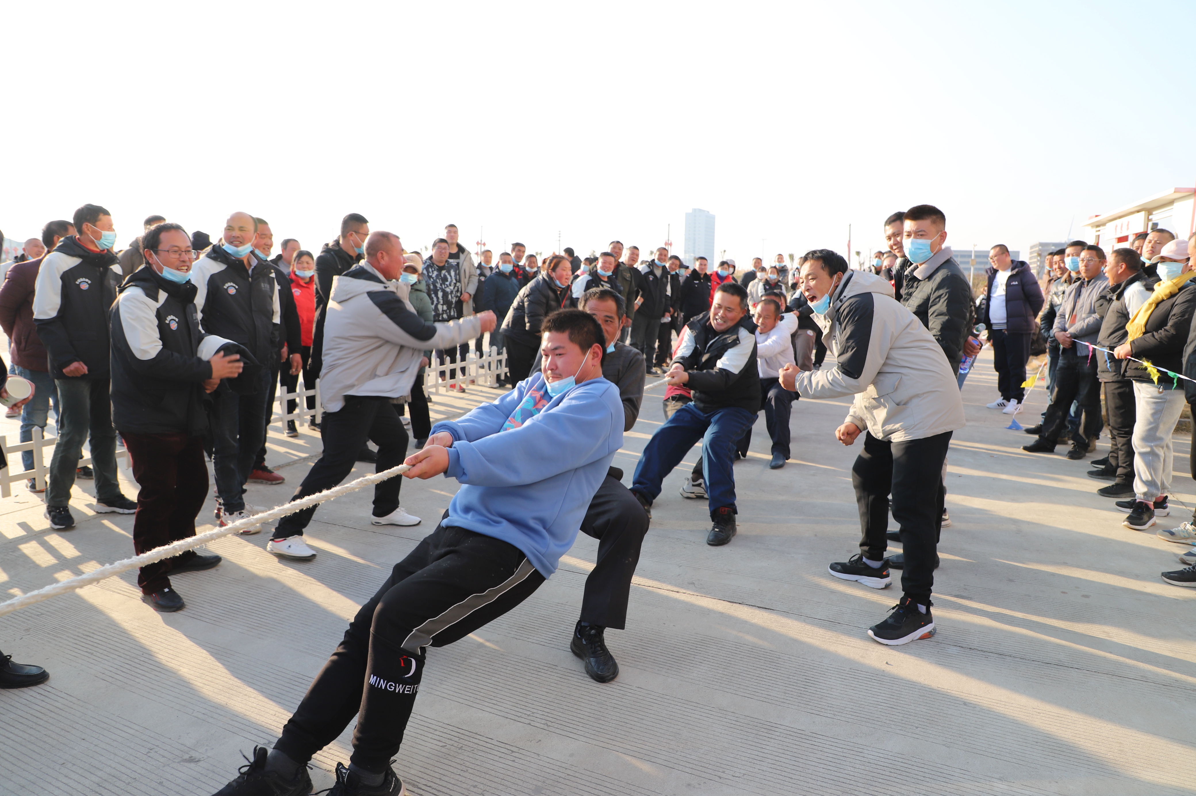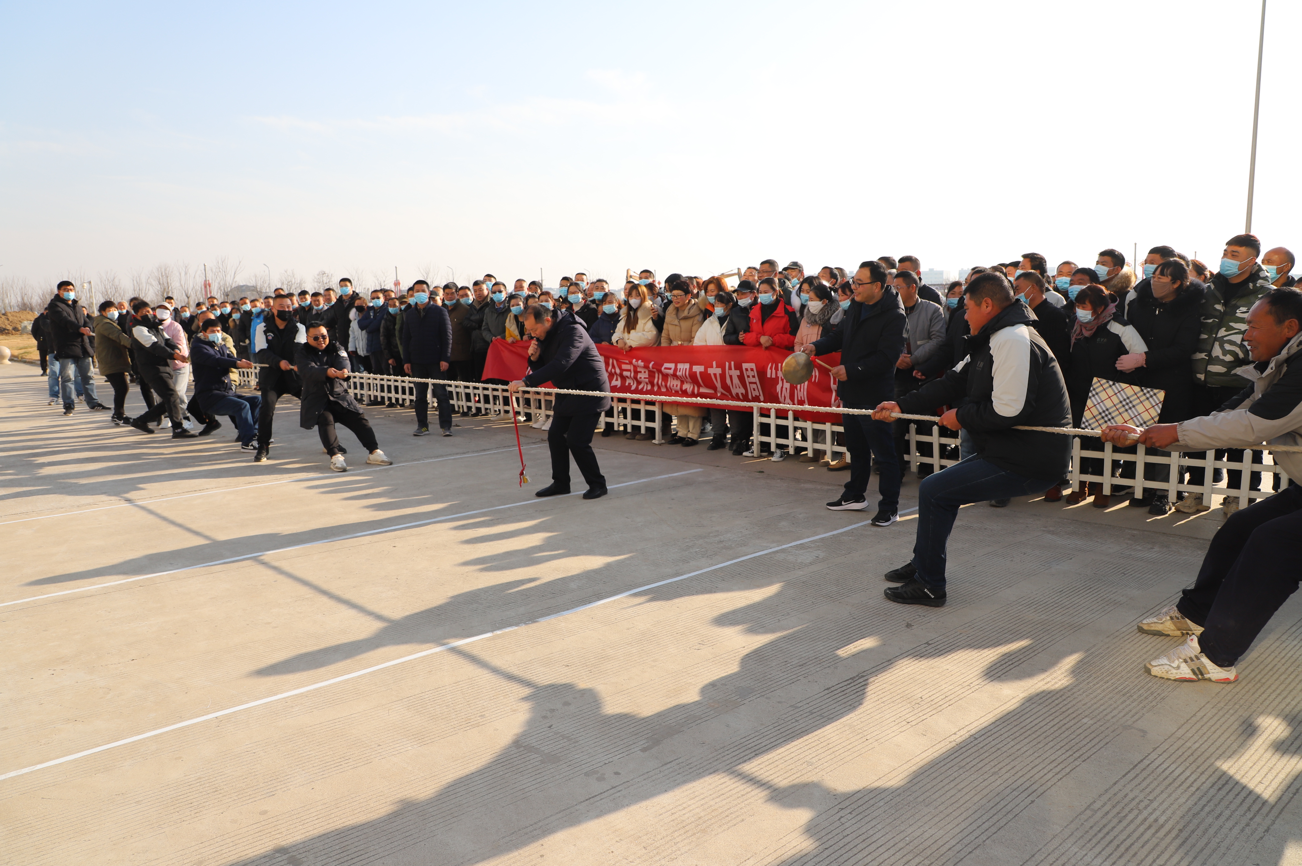 開幕式結(jié)束以后,緊張激烈的拔河比賽立即展開。由新河、埓南、宵洋等單位組織的13支參賽隊(duì)伍按照抽簽順序逐一上臺(tái)亮相。賽場(chǎng)上,鼓舞聲、吶喊聲此起彼伏,參賽隊(duì)員們團(tuán)結(jié)協(xié)作、不到最后一刻永不言棄的精神贏得了在場(chǎng)觀眾的陣陣掌聲。經(jīng)過(guò)近一個(gè)小時(shí)的激烈角逐,最終埓南制鹽分公司一隊(duì)力壓群雄,奪取拔河比賽第一名,新河制鹽分公司二隊(duì)、新河制鹽分公司一隊(duì)及宵洋物流公司代表隊(duì)分獲二至四名。