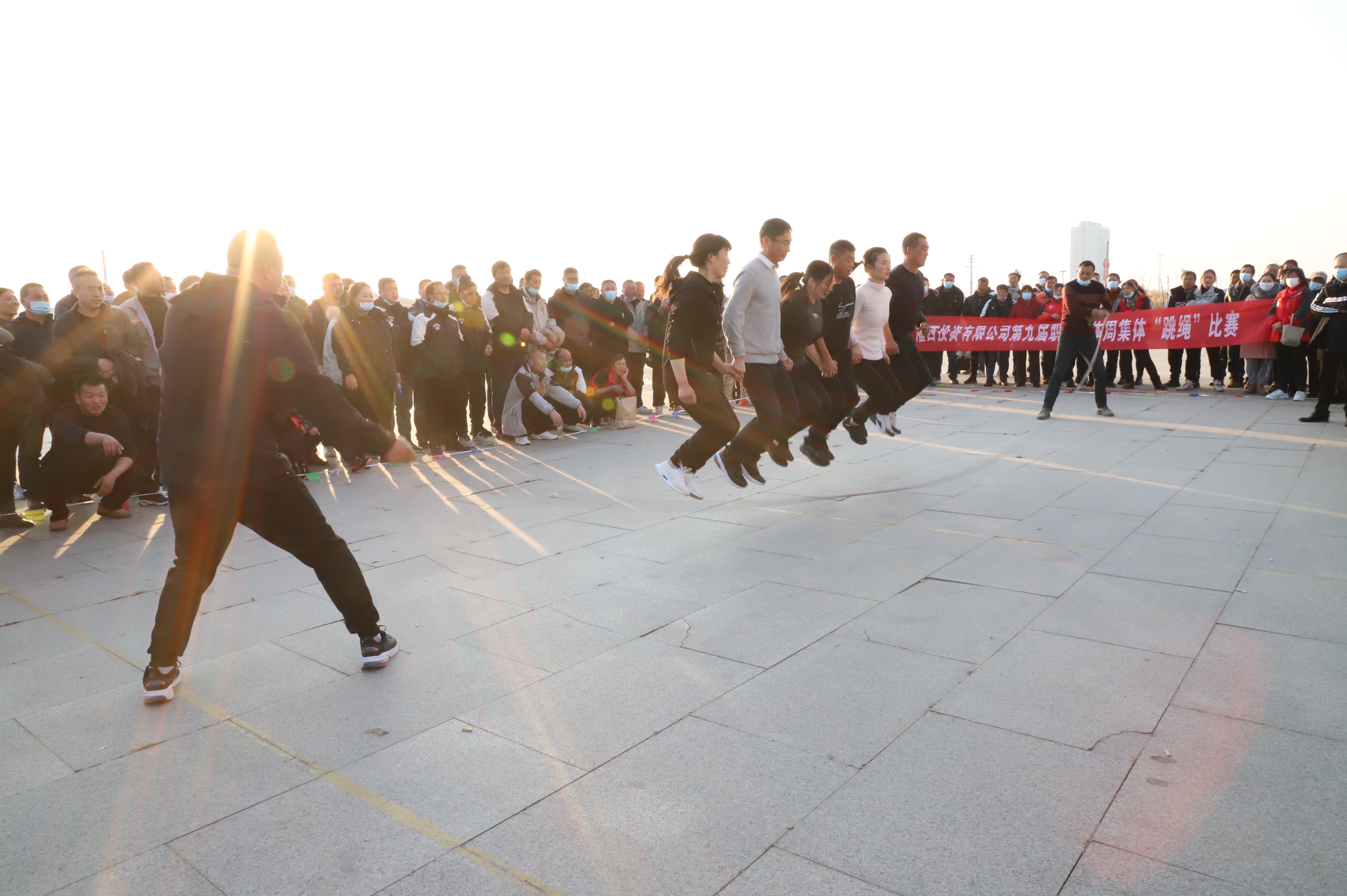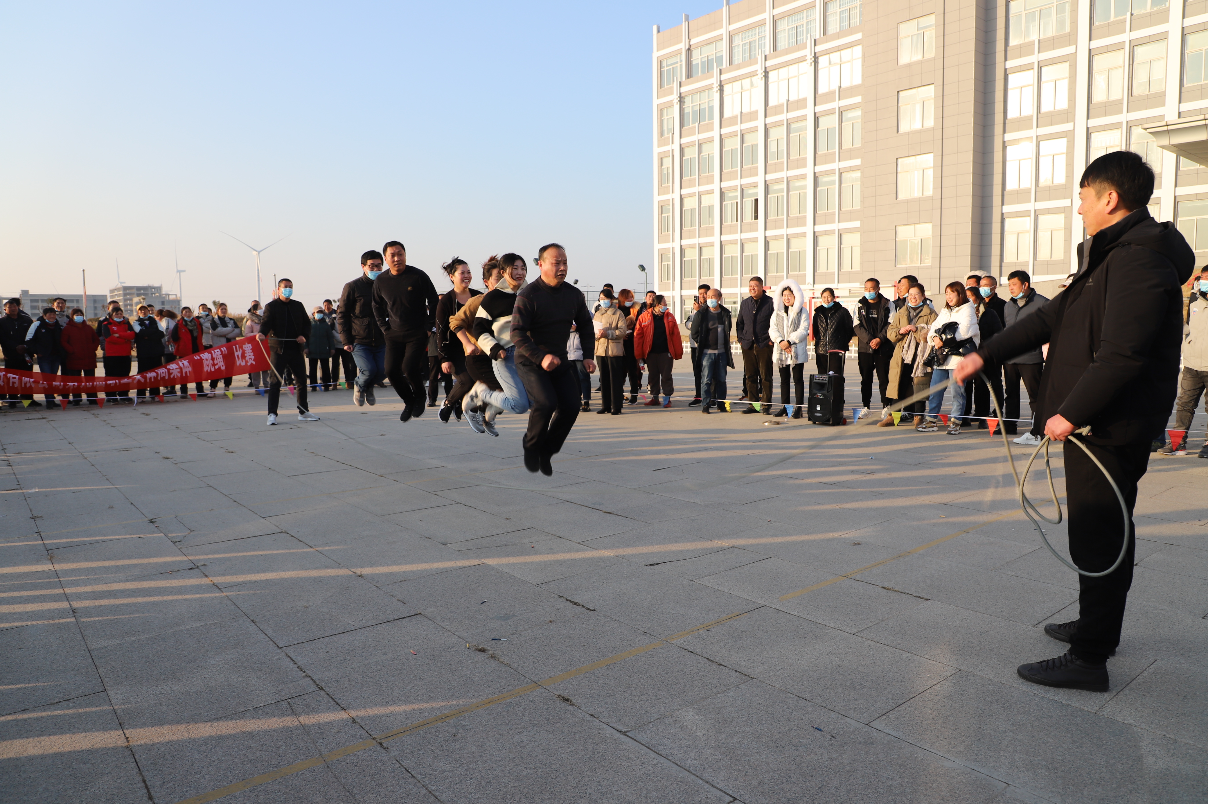 隨后進(jìn)行跳繩比賽,來(lái)自南翼、新河、埒南等10支參賽隊(duì)伍逐一上臺(tái)比賽,觀眾隨著場(chǎng)上比賽隊(duì)員跳繩的節(jié)奏,不約而同地打著節(jié)拍、數(shù)著數(shù),最終埒南制鹽公司代表隊(duì)?wèi){借刻苦訓(xùn)練與創(chuàng)新——參賽隊(duì)員手牽手共同協(xié)作,奪得第一名,新河制鹽公司、宵洋物流公司、生產(chǎn)服務(wù)中心分獲二至四名。(西宣)