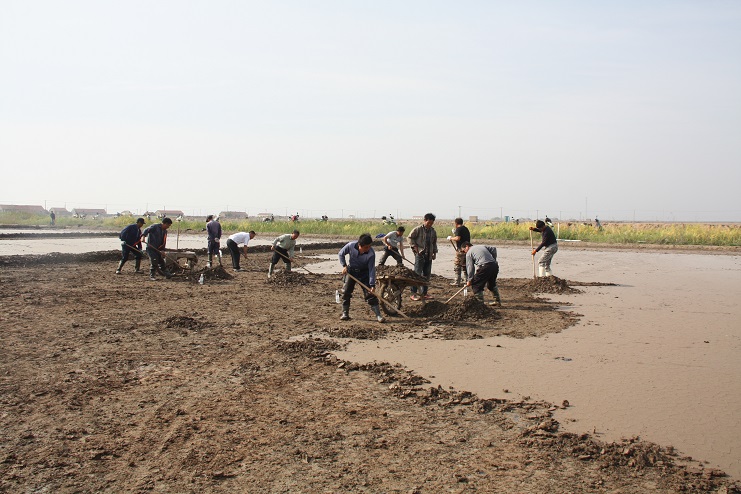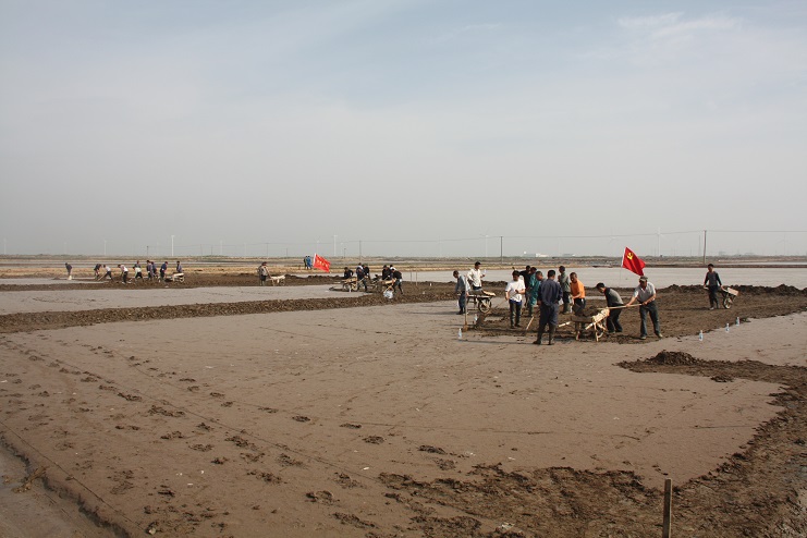 據(jù)了解,《淮鹽制作技藝》已于2015年成功申報國家級非物質(zhì)文化遺產(chǎn)保護項目并審核通過。此次央視攝制組主要圍繞淮鹽發(fā)展歷史來我公司拍攝平面灘、對口灘等制鹽工藝及過程,為制作淮鹽文化宣傳片收集影像資料。埒南制鹽分公司黨支部在接到通知后,高度重視此項工作,迅速組織黨員職工及有經(jīng)驗的班組長投入到灘地改造工作中來,為確保此次拍攝工作順利進行奠定了扎實的基礎(chǔ)?;顒蝇F(xiàn)場,大家按照事先劃分好的區(qū)域分工協(xié)作,互相配合,有鏟泥的,有利用獨輪車推泥的,不一會功夫就完成了四條池埝的制作。據(jù)“淮鹽文化傳承人”韓井軍介紹,下一步在平面灘制作完成后,再對格塊進行晾曬、“三嗆四壓”等工序后才能投入使用。(封楊)
