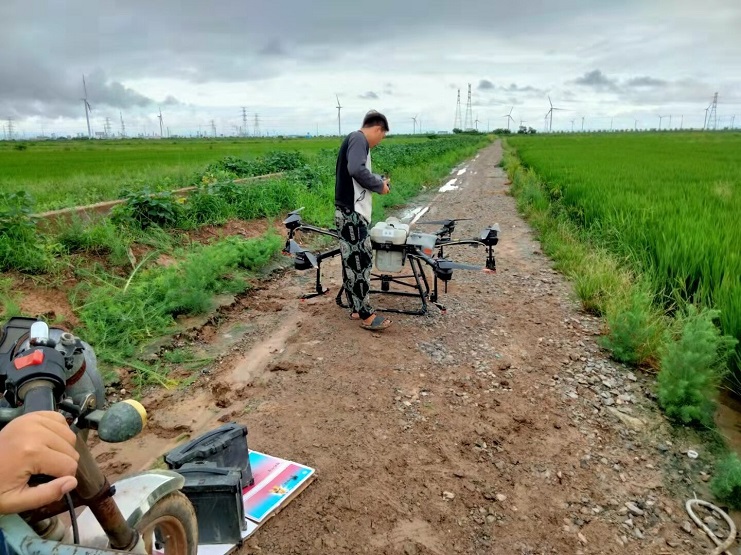 近日,明威公司農田水稻進入齊穗期,是水稻形成產量的關鍵時期,為切實做好水稻該期病蟲害的防治工作,明威公司組織員工在下雨間隙,用一臺無人機,對二灣種植區的稻田噴施除蟲農藥——齊穗藥,以增強水稻對病蟲害的防控能力。