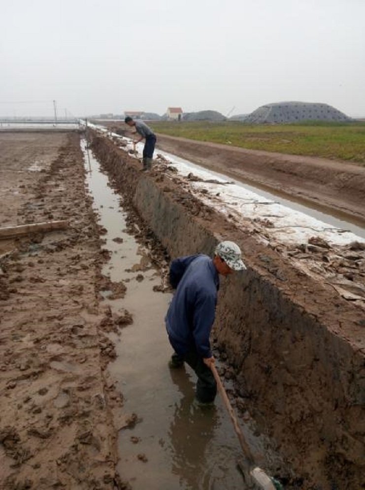 根據公司生產部門統一要求,在每個生產班組新灌一塊結晶池,埒南制鹽分公司精心布署,細化安排,嚴控時間節點,抓頭、抓早、抓緊,對生產班組新上的格塊堅持做到現場指導,跟蹤督察,不符合灌池質量標準的堅決不準上馬。(圖為職工在修整結晶池堰)莊忠明