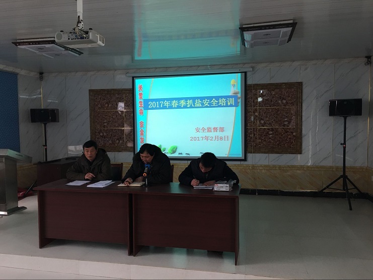 2月8日下午,場安全部門在生產服務中心對我公司扒鹽人員進行安全培訓,共40余人參加培訓,首先陸部長對扒鹽操作規程進行講解,其次王經理對以往典型安全事例進行闡述,扒鹽著重強調幾點:1、執行勞動紀律,2、堅決執行扒鹽十四不準,3、嚴禁酒后上崗、杜絕三違等。最后李部長要求所有扒鹽人員吸取以往扒鹽出現安全事故,血的教訓,要時記安全,牢記安全,把安全貫穿到每個人的心中,所有扒鹽人員進行了考試,進一步牢記相關安全操作規章制度,祝愿2017年春扒平安、順利完成。(匡亮)