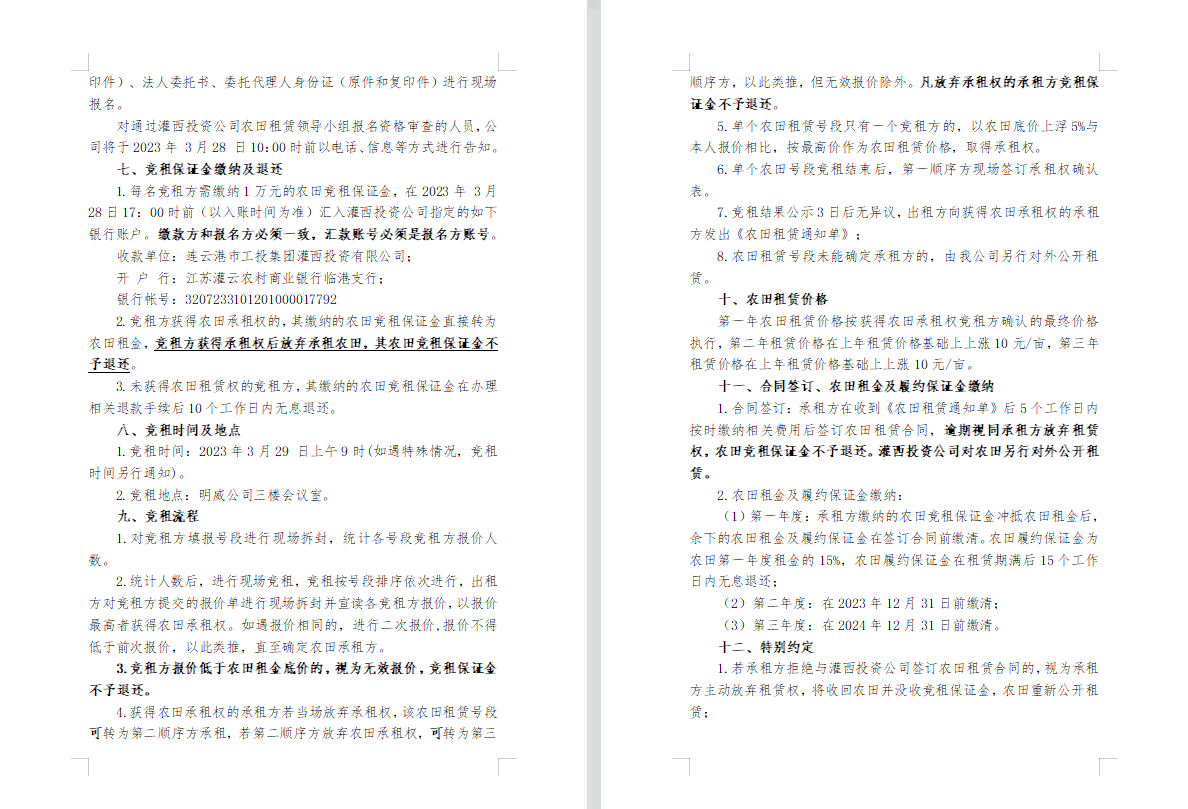 2023年灌西投資公司農田公開競租三次公告