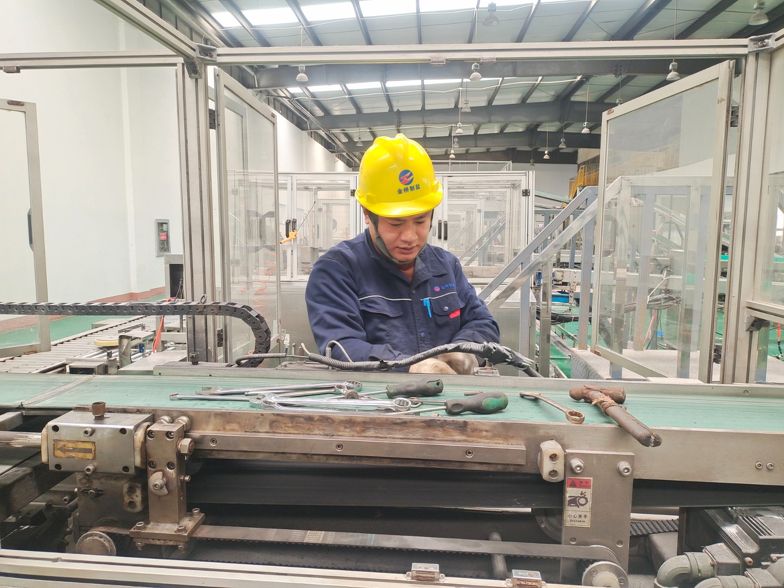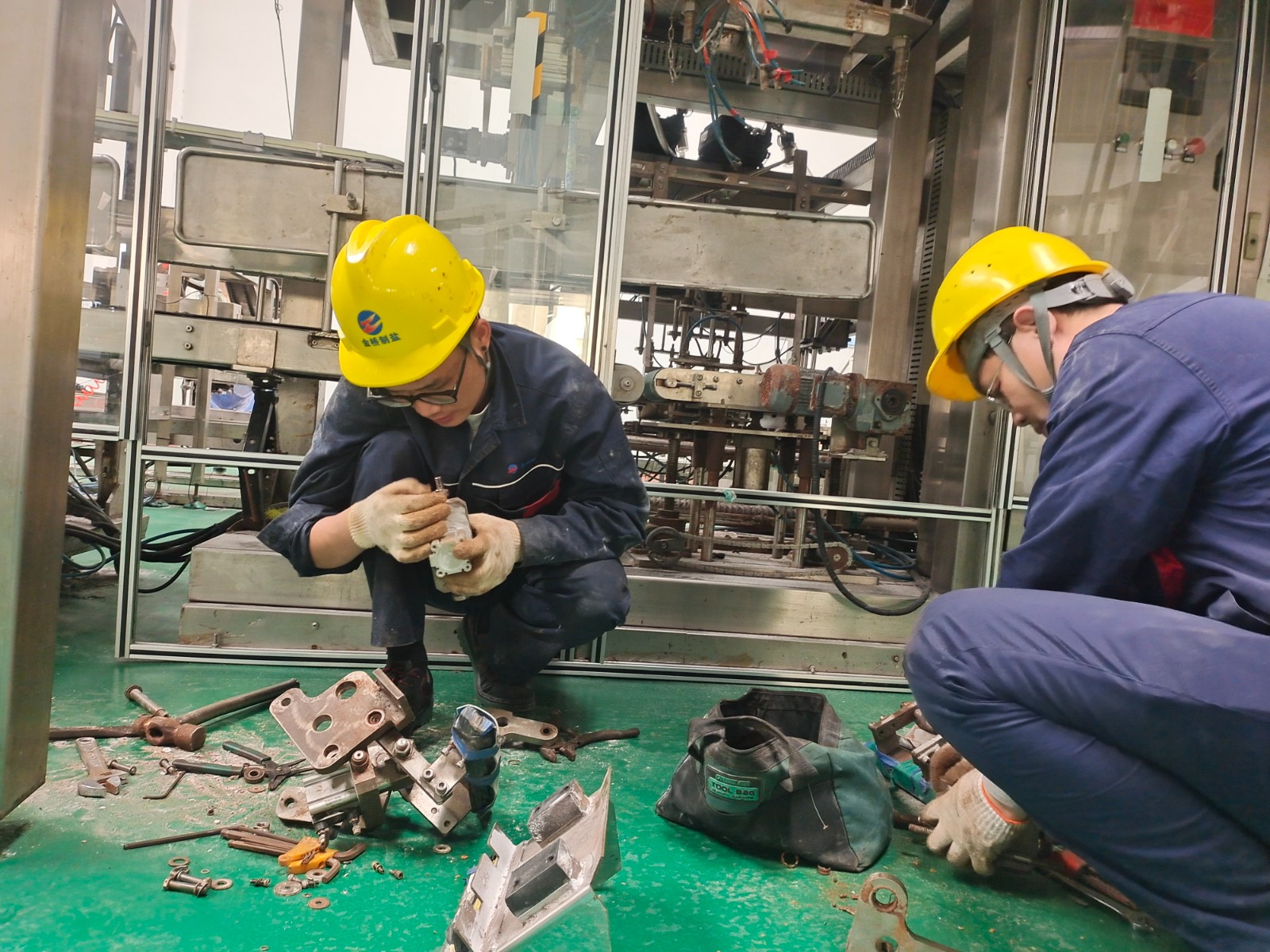 包裝鹽車(chē)間停產(chǎn)期間,為避免車(chē)間設(shè)備在后期生產(chǎn)時(shí)出現(xiàn)問(wèn)題,王以知帶隊(duì)對(duì)設(shè)備進(jìn)行維修保養(yǎng)。經(jīng)過(guò)分工,陳韓和王睿對(duì)裝袋機(jī)夾袋機(jī)構(gòu)更換磨損軸承;趙新超對(duì)裝箱機(jī)伸縮頭導(dǎo)軌進(jìn)行調(diào)整維護(hù);王東海和秦榆旺對(duì)爬坡皮帶機(jī)檔條脫落的進(jìn)行加固;最后,對(duì)電纜溝蓋板除銹上漆,使車(chē)間環(huán)境更加美觀整潔。(李竹垚)