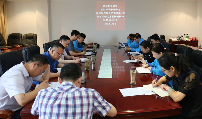 7月5日上午,我公司召開黨委理論中心組(擴大)學習會,專題學習習近平總書記在慶祝中國共產黨成立100周年大會上的重要講話精神。公司黨委書記、董事長、總經(jīng)理朱桂玉主持學習會。公司領導班子成員及其他黨委理論學習中心組成員,各車間單位黨政負責人,機關各部室負責人參加學習會。