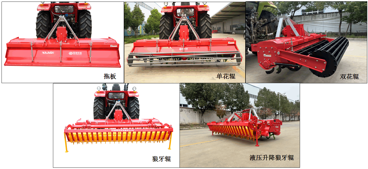 可根據(jù)水旱田及農(nóng)藝需要配制:滅茬刀軸、開墾刀軸、提漿刀軸、加密刀軸、提漿刀軸、加長刀座