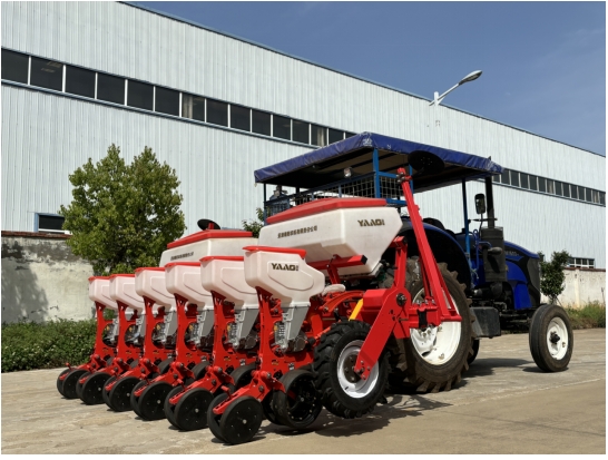 亞澳農機作為國內外知名的農業機械制造商,此次攜帶多款創新產品不僅體現了亞澳農機在技術創新上的深厚積累,也彰顯了公司在智能制造領域的領先地位。其中,氣吸式播種機作為本次重磅新品首發,搭載了進口風機排種器,具有性能穩定,可真正實現單粒播種,避免雙粒播種造成后期間苗的人工浪費。設計上主架采用高強度米子單梁結構,強度高,不易變形,機身前后距離近,轉彎掉頭更方便等特點,受到了前來參觀的農機朋友的高度認可。