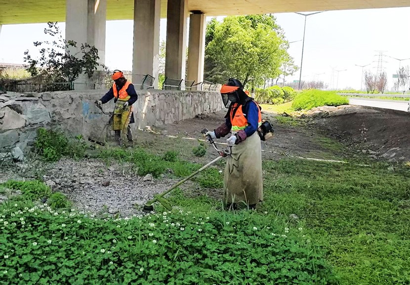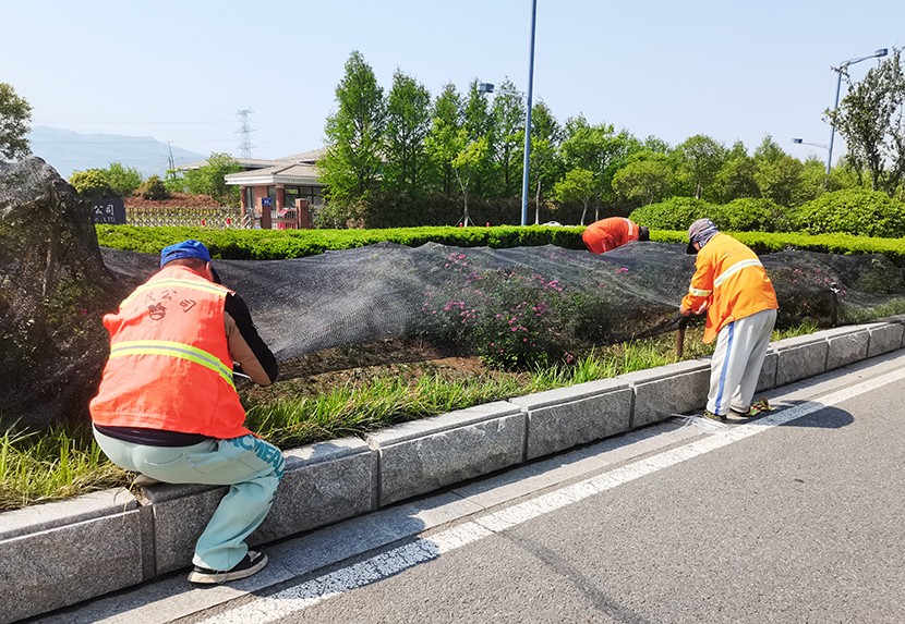 五一期間現場一片繁忙景象。養護工人們采取錯峰作業,避開交通高峰,手持高壓水槍 ,對轄區東方大道、匯晶路、顧圩路兩側新栽植的苗木進行精準澆灌,確保新栽苗木存活率;東方大道養護班在孫班長的帶領下,對東方大道中央隔離帶內進行補植麥冬,采取覆蓋遮陽網等措施,以減少水分蒸發和避免陽光灼傷。同時充分利用雨后土壤松軟,組織工人對轄區綠化帶內的雜草、雜樹進行清除。