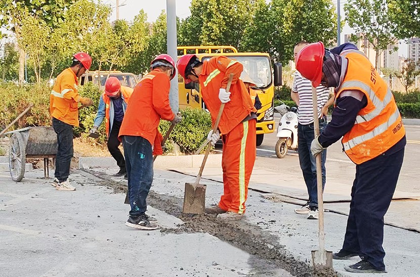 節日期間全面推進轄區道路改造、設施維護等重點工程,以實干為節日添彩。市政維修班組成員對開發區黃海大道主干道公安分局南門進行道路開道口作業,同步推進路基平整,現澆混凝土墊層等工序,為后續鋪設瀝青做好準備;設備維護班班組人員彎腰揮汗,搶抓工期,對玉竹路、環湖路道路全線3.5公里路牙石涂刷黃色反光漆,確保工程能在節后順利通過驗收;為應對5月4日重大工程項目開標,投標攻堅小組成員主動放棄休假,晝夜奮戰,全力以赴完善投標文件,確保以最優方案參與競標。