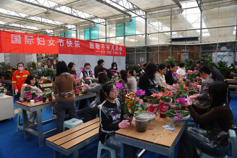 ? ? 情暖三月,巾幗芳菲相競妍。在“三八”國際婦女節來臨之際,為展現公司女干靚麗風采,豐富文化生活,3月6日下午,臺北(華茂)公司工會組織50余名女職工代表在市振興花卉城開展“國際婦女節快樂 致敬不平凡的你”慶婦女節插花活動,展現新時代女性風采。