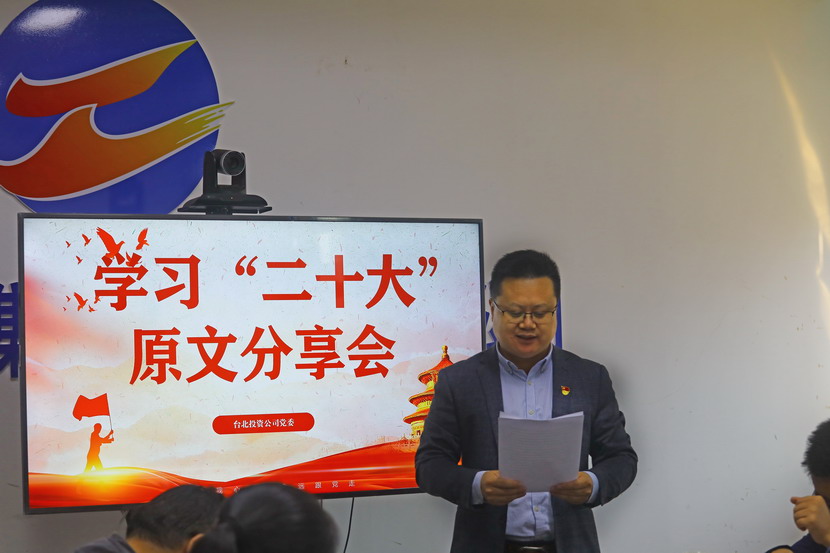 10月21日,臺北投資公司黨委組織召開黨的二十大報告學習交流會,每位同志閱讀報告原文,針對報告內容結合工作實際,分享心得體會、暢談工作思路、謀劃未來發展。