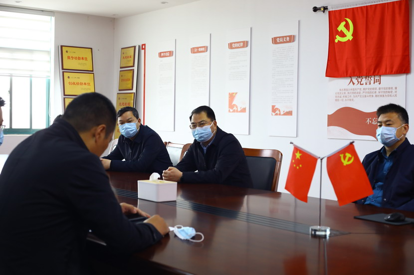 隨后,戴書記一行在會議室聽取投資公司一季度黨建工作匯報,對投資公司工作給予肯定,投資公司領導班子面對突如其來的疫情時,做到了應變有力、保障有力、組織有力。在聽取近期生產經營、黨的建設等工作匯報后,戴書記提出四點指導意見:一是不折不扣落實上級指示精神。二是毫不動搖抓好疫情防控和復工復產。三是一著不讓推進黨建與工會工作。四是深入細致安全穩定環保工作。