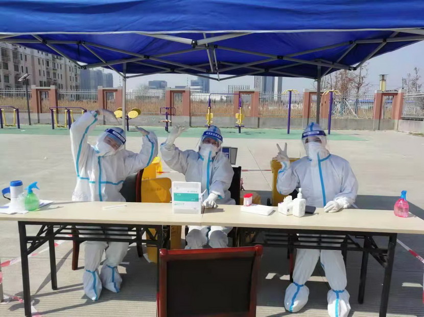 志愿服務(wù)篇。“現(xiàn)在我們是封控區(qū),不能出去給政府添亂,閑也是閑著,所以社區(qū)一招手我們就來了”這是臺北女工委副主任宋文靜的一席話。這波疫情來的突然,緊急核酸檢測緊缺志愿者服務(wù)。在公司”戰(zhàn)疫情、爭貢獻(xiàn)“主題實(shí)踐活動(dòng)感召下,她已經(jīng)在小區(qū)擔(dān)綱核酸檢測志愿者有兩個(gè)夜晚了。而這一幕決不只在海州主城區(qū),在開發(fā)區(qū)昌圩社區(qū),臺北志愿服務(wù)隊(duì)已經(jīng)成為社區(qū)防疫主力。疫情伊始,臺北下屬海州灣公司黨支部一班人就已經(jīng)奮戰(zhàn)在社區(qū)防疫一線。黨支部副書記蘇玲、女工胡超,與專業(yè)醫(yī)護(hù)人員一道,穿上厚重防護(hù)服,直接站在核酸檢測最前線,這一站就是12小時(shí)。值班后稍作休息他們就又聯(lián)系總經(jīng)理霍正鋼,翔立黨支部副書記姜海洋,入黨積極分子朱文健等參與聯(lián)防聯(lián)控,擔(dān)當(dāng)疫情義務(wù)宣傳員。