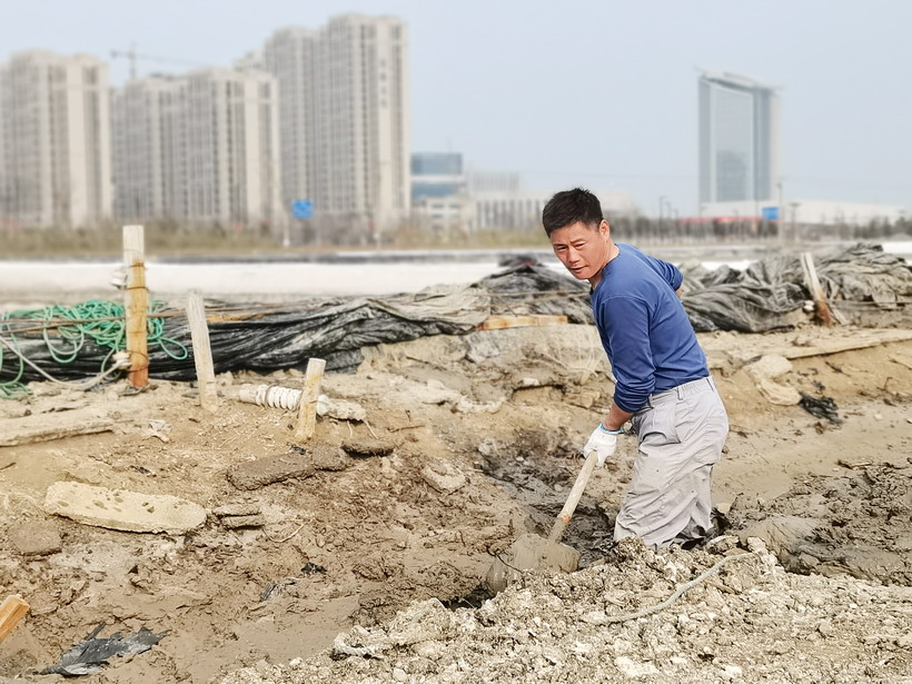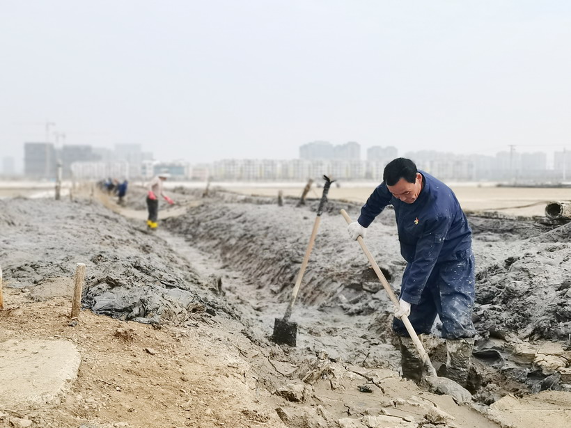近日,迎著初春的風走進昌圩班組,在印有醒目“開局就是決戰,起步就是沖刺”的橫幅下,退休黨員朱春年正帶領職工撩溝做堰,更換結晶池塑料布等。兩鬢斑白的朱組長士氣毫不減當年,一邊忙一邊說:“昌圩結晶池因灘工撂荒較嚴重,冬準工程量大,為了能完成公司冬準計劃,我們把海濱、程圩職工都抽調過來了,過年都在干活,目前這邊1000畝結晶池已經完成,春節期間灌了一部分,現在天時好,我們得抓緊時間,早灌池,早落鹽!你們自己轉轉、看看吧,我實在太忙了····”。