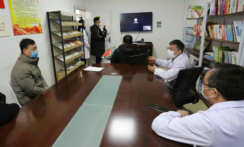 吳衛平對中醫院醫護人員投身戰“疫”一線,用生命拯救生命,展現出的舍生忘死、救死扶傷的高尚職業道德,表示了崇高的敬意,同時也指出投資公司與中醫院還有一段神奇的紐帶:公司職工在一場意外休克中,幸得中醫院護士全力搶救才轉危為安,而這名護士既是我公司職工的家屬,也是中醫院廣大奮戰在疫情防控一線醫護者中的一員。這次來一是向中醫院的“逆行者們”表示敬意;二是向救死扶傷、醫者仁心的護士表示感謝;三是代表公司工會看望慰問共戰疫,齊奉獻的職工家庭。