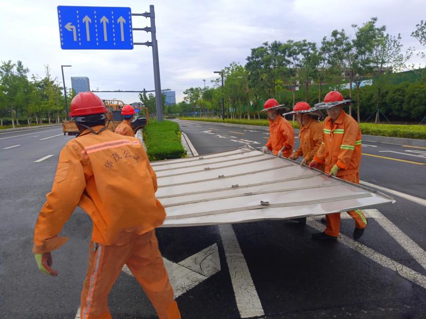 天蒙蒙亮,盛達(dá)市政道路維修班組人員便到崗,對(duì)轄區(qū)內(nèi)道路、排水設(shè)施進(jìn)行全面檢查,及時(shí)將斷枝的樹(shù)木,吹飛的廣告牌,吹翻的企業(yè)圍擋等進(jìn)行清理,及時(shí)疏通被樹(shù)葉、淤泥、垃圾堵塞的雨水井蓋,巡查發(fā)現(xiàn)有破損井蓋的立即上報(bào)并迅速修復(fù),同時(shí)在危險(xiǎn)地段設(shè)置警戒線(xiàn)、錐形桶,全力保障行人和車(chē)輛的通行安全。