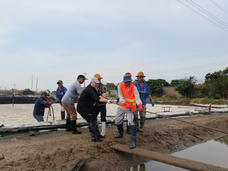 秋鹽開扒以來,海州灣公司上下所有干群,主動放棄節假日,晝夜奮戰在鹽池里。人工扒鹽三班倒,做到人停機不停;跟班人員24小時無縫銜接,確保時刻在扒鹽現場做好安全監管工作。目前,隨著堿廠關停的步伐加快,原鹽搶收工作進入到了決戰階段,在公司黨委的大力支持下,兄弟單位及機關各職能部門的火速馳援下,海州灣公司迅速啟動第二臺機械扒鹽管道,與人工扒鹽同步進行。公司領導與廣大職工想在一起、干在一起,上下齊心、爭分奪秒,擼起袖子、甩開膀子,在鹽池間盡情地揮灑著汗水,確保勞動成果顆粒歸倉,誓奪原鹽收官戰的勝利。