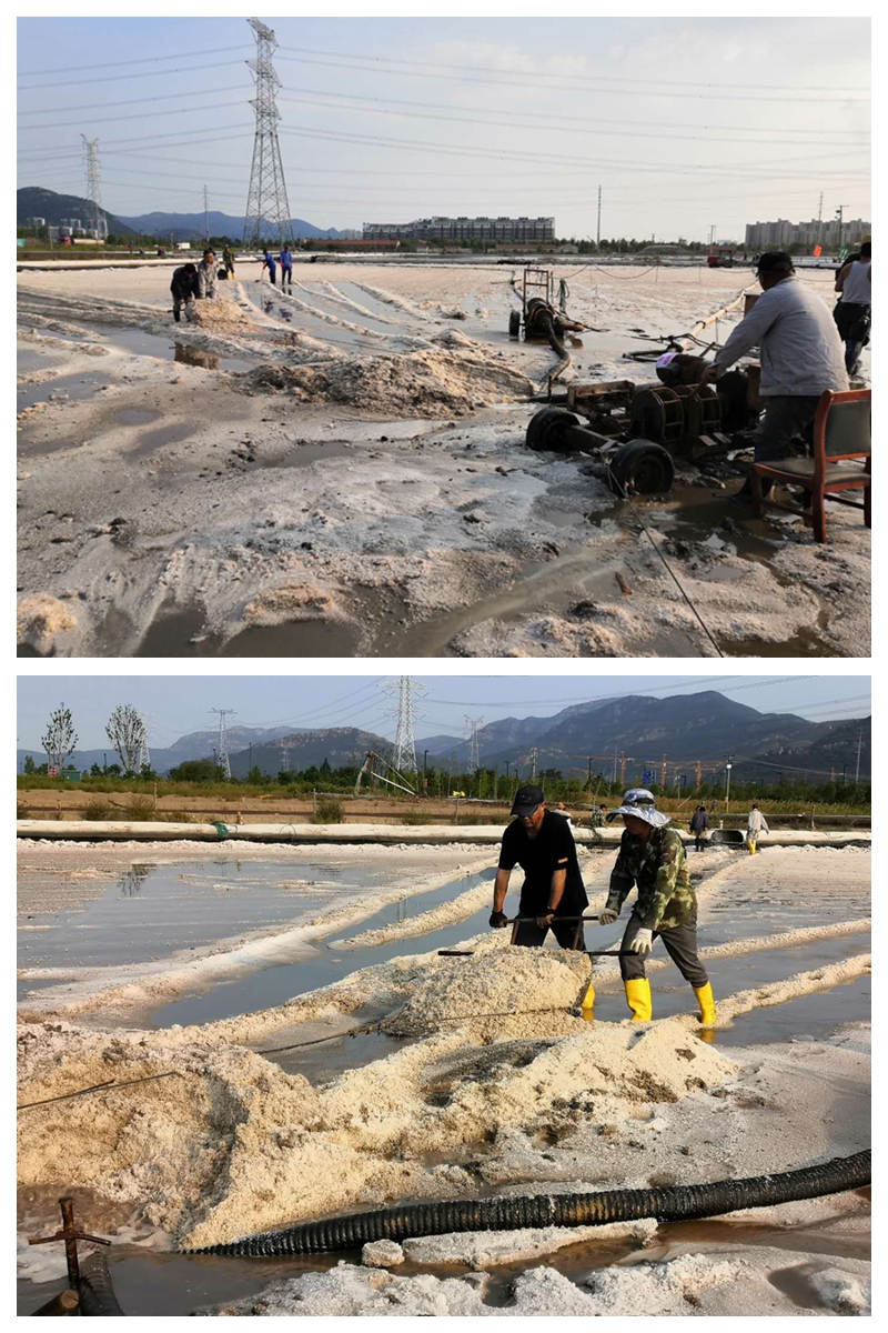 “大架在向后移動4到5公分,鹽鎊、鹵鎊與管頭螺絲擰緊沒有?觸電保安器試跳一下”…….扒鹽現場忙碌而有序,扒鹽人員對開機前準備工作再一次檢查確認。15:56分鞭炮齊鳴、禮花滿天,“秋扒”正式開啟。本次扒鹽采用人工與機械相結合的工作方法,根據鹽層的厚薄程度決定扒鹽的方式。此次扒鹽生產周期長、工作量大,工區認真組織、精心安排,制定了詳細、”人性化”的管理人員跟班督查值班表(男同志夜班女同志白班)。要求跟班人員,務必將“安全、質量”兩大主題貫穿整個秋扒工作的各環節,每天深入扒鹽點開展全面綜合性的定點檢查,重點圍繞“工藝執行、安全防范、護具穿戴”等,職工容易產生思想麻痹的細節工作,嚴明紀律,杜絕違章作業。搶時間爭速度,確保“秋扒”高效有序完成。